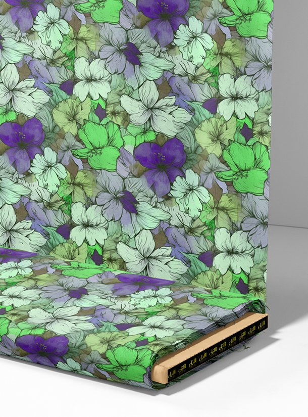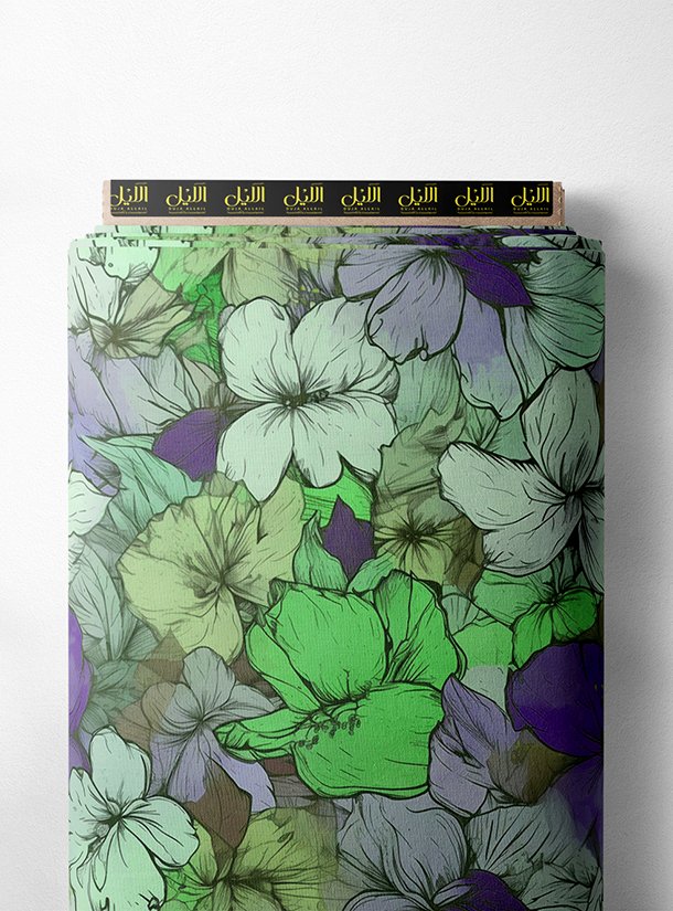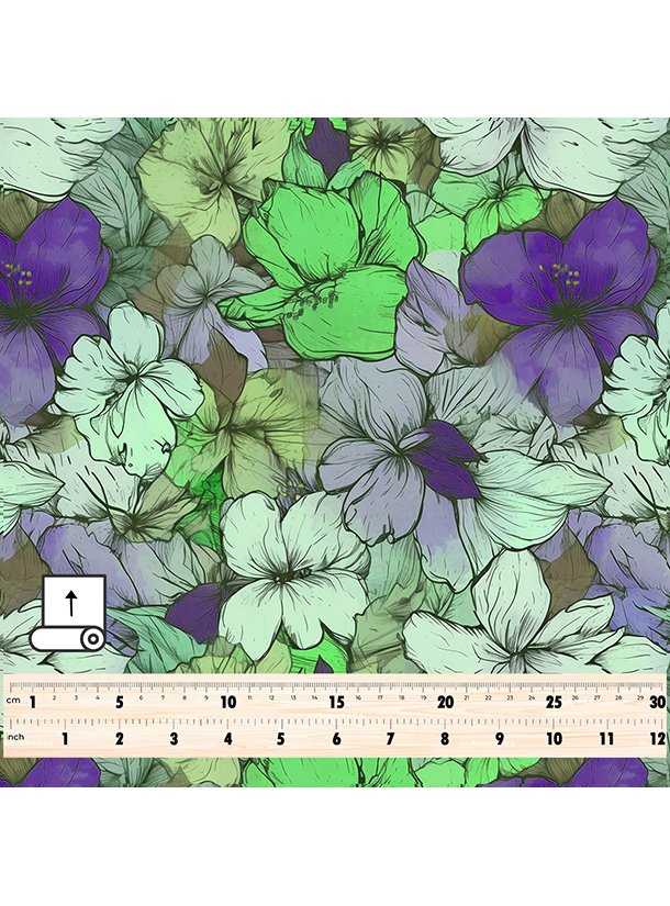 Bloom flower style with green,purple colors