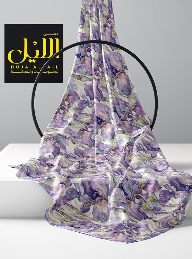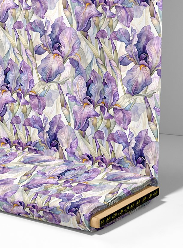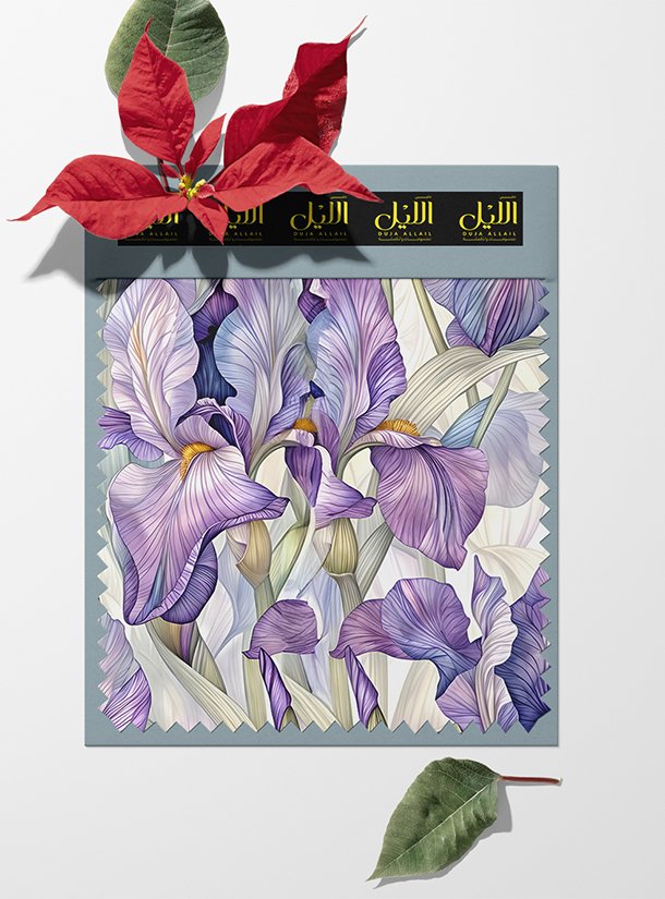 Iris flower style with blue, green colors