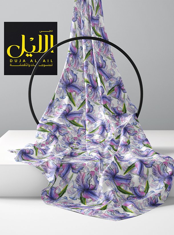Iris flower style with purple,green colors