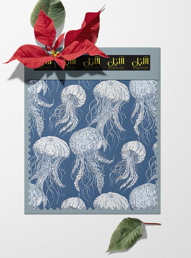 Jellyfish ocean and sky style with white, blue colors