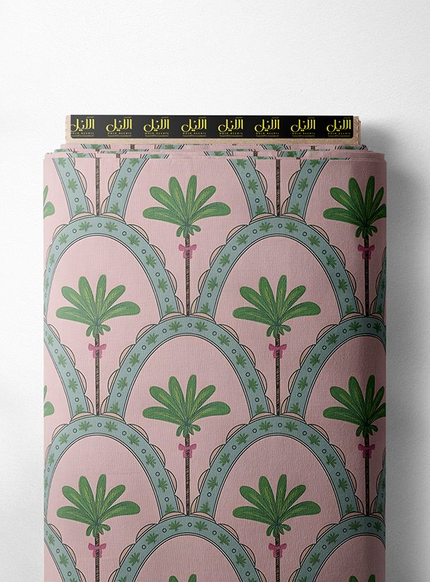 Palm flower style with green,pink colors